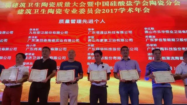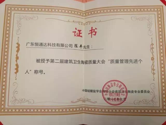 此次大会,168体育平台除了协办“恒通达——欢乐之旅”以外,恒通达还荣获了“第二届建筑卫生陶瓷质量大会科技创新奖评选——质量创新奖”、总经理陈丰荣获“质量管理先进个人”荣誉称号。