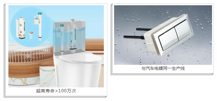 在原料市场价格疯涨的今天,我们仍然坚持使用优质原料,有别于市面上为了降低成本而使用其他所谓的“改性”材料。我们的进水阀产品安全耐磨,超高寿命>100万次,远超国标;我们的按键产品与汽车电镀同一生产线。